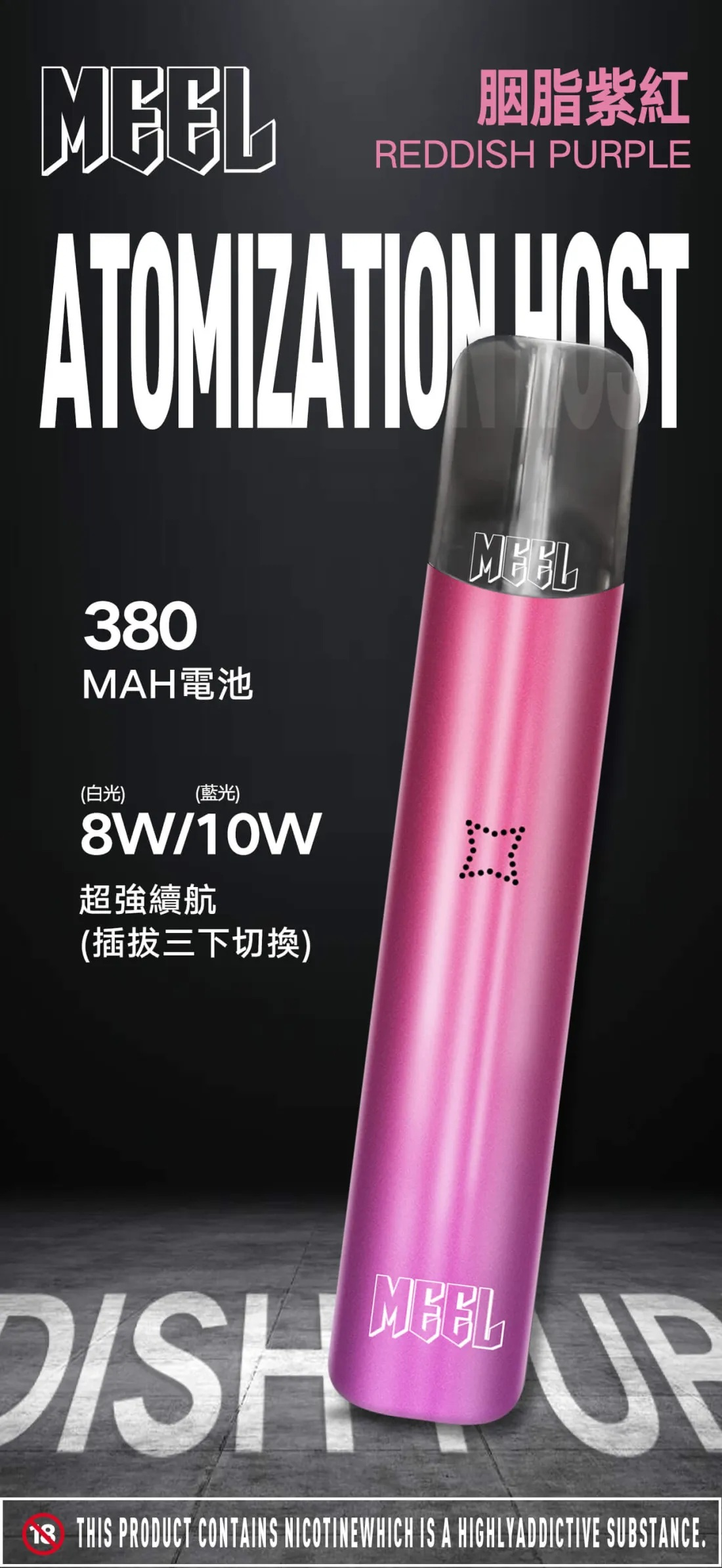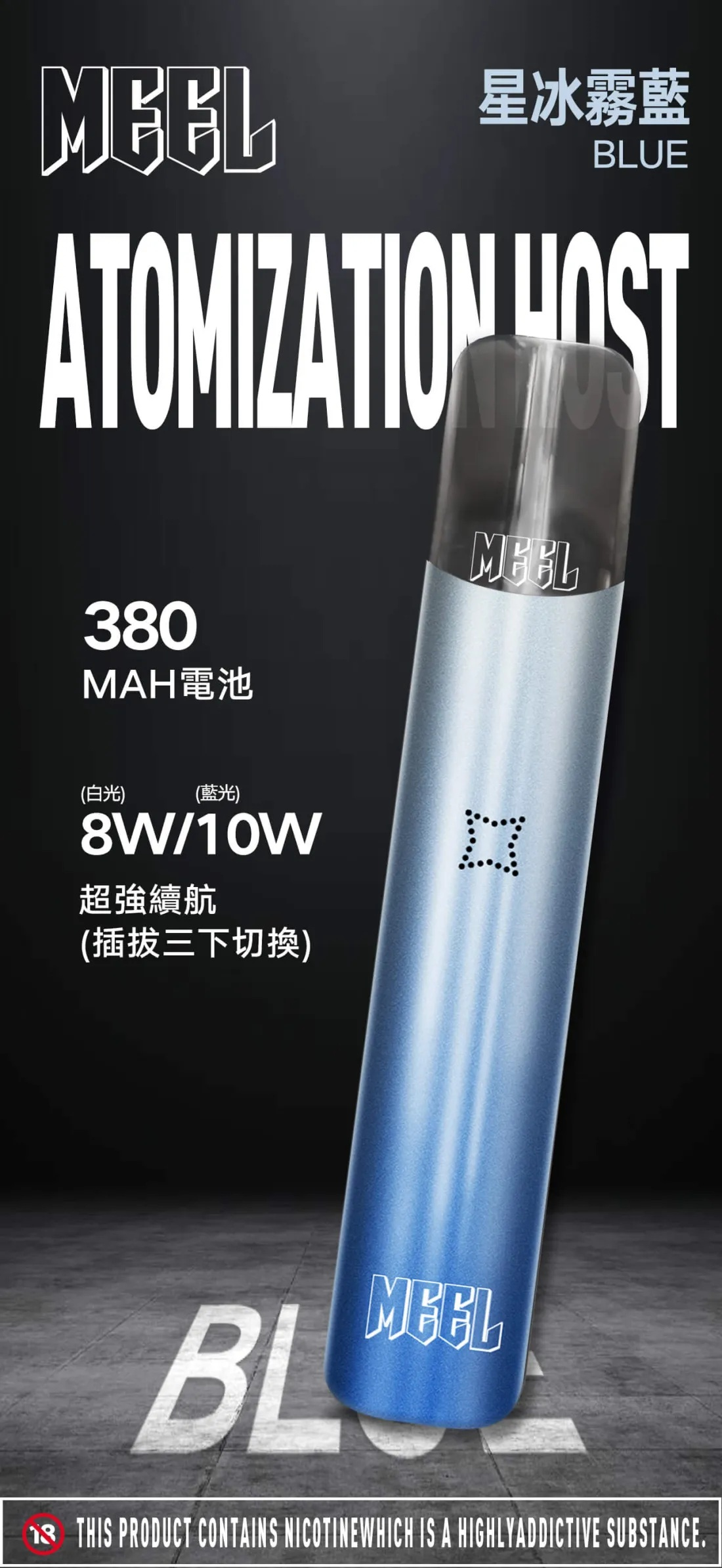 MEEL 一代主機採用穩定輸出設計,霧化表現細膩順口,支援多款一代通用煙彈。外型簡約時尚,輕巧好攜帶,適合日常使用與入門玩家。